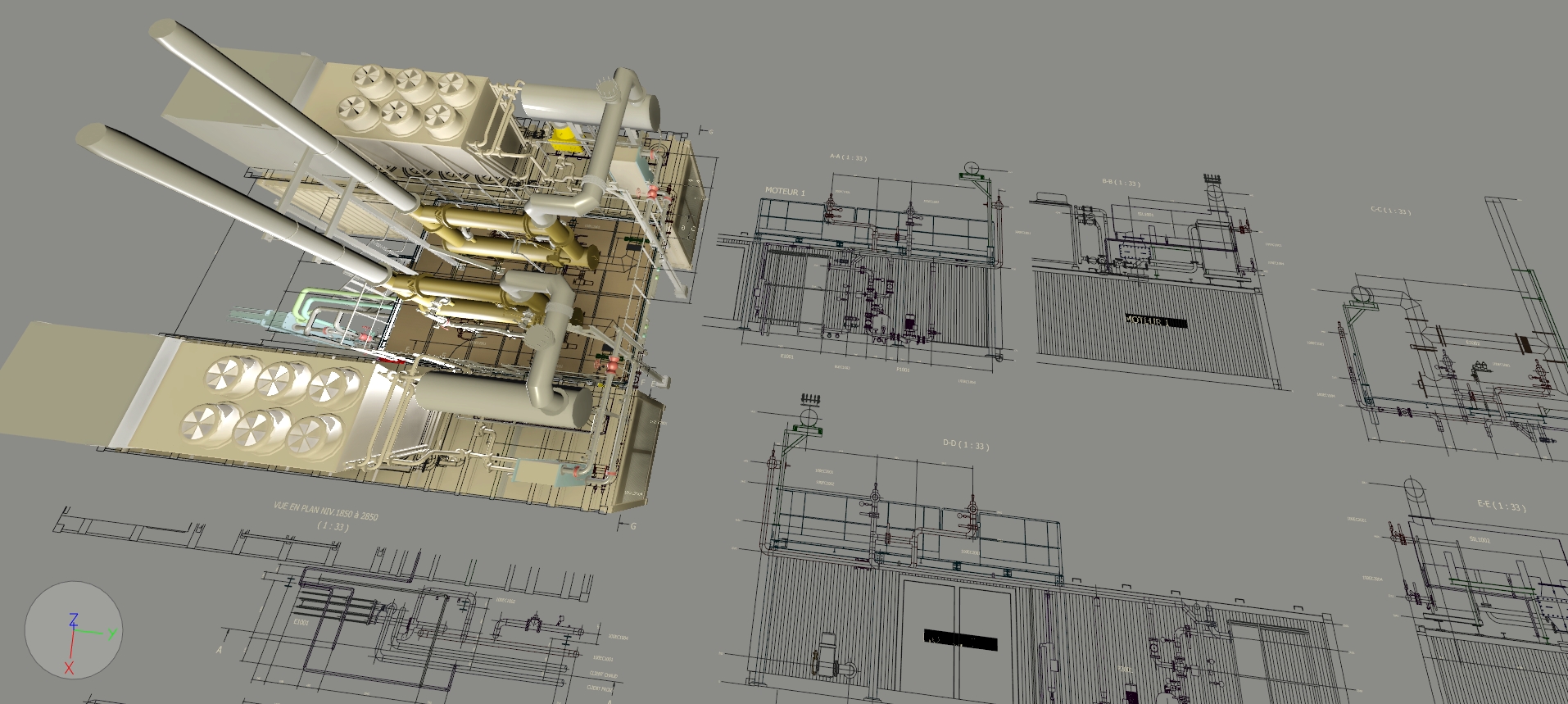 PLANS d'IMPLANTATION : Via plateforme Autodesk PLANT3D, REVIT.