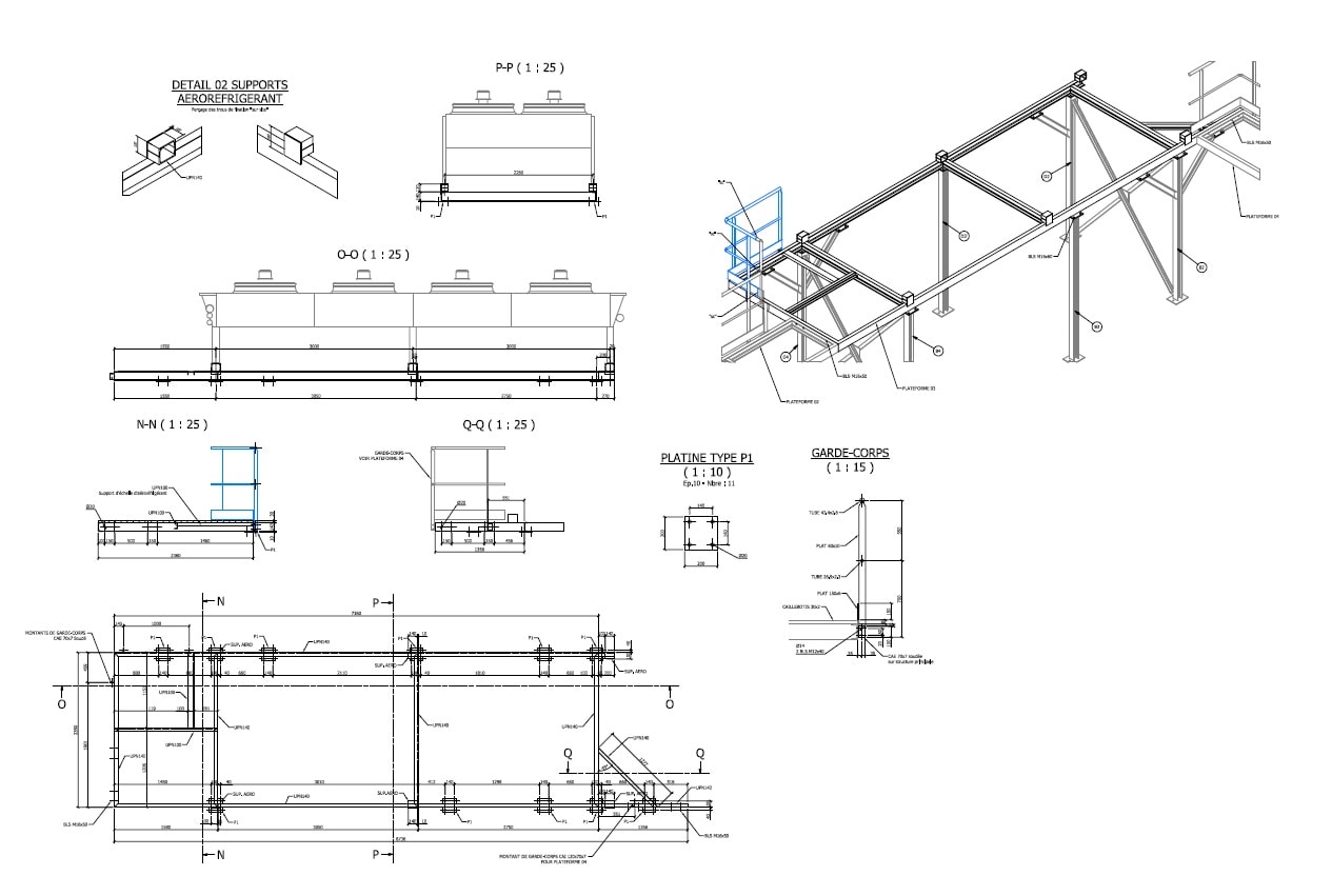 STRUCTURES METALLIQUES : Projets 3D, plans Guides, plans d'exécutions.